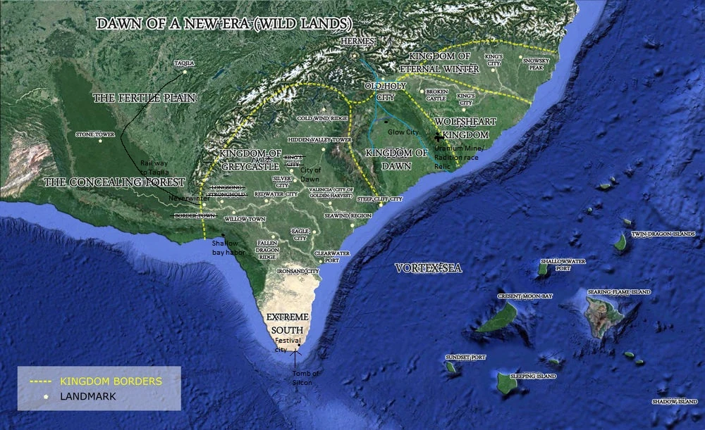 Good to note, as of chapter 914, we have gotten the information that maggie flies around 60km/h and that it would take her to fly from Hermes to Neverwinter just less than 3 days to fly there after sunset not picking any food whatsoever. if they meant that she flies for 24 hours a day it would be around 4000 km. if they meant only around 14 hours its still around 2520 km. meaning that from Snowsky Peak to the Extreme South is most likely between 4000 km and 7000km.